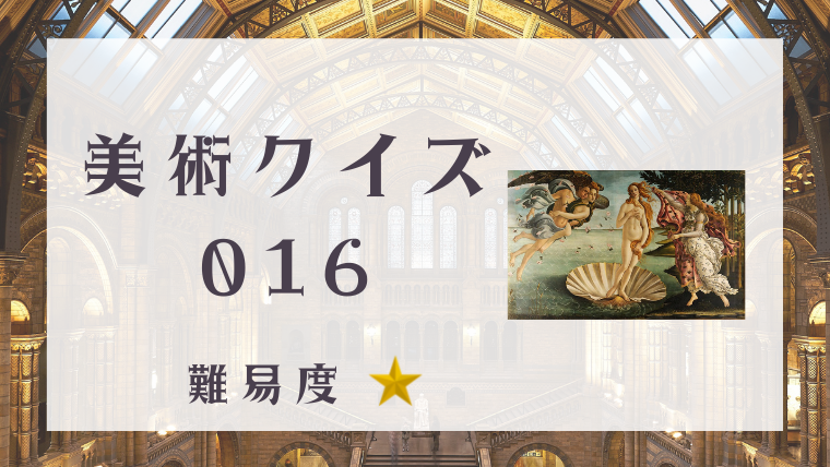 次の作品の作者とタイトルは何でしょう? 答えは↓にあります。スクロールして見てください。 作者 サンドロ・ボッティチェリ タイトル ヴィーナスの誕生 制作年 1483年頃 時代・様式 盛期ルネサンス 展示場所 ウフィツィ美術館(フィレンツェ) 美術クイズ 正解したらシェアしてみよう! URLをコピーする URLをコピーしました! 美術クイズ #015 美術クイズ #017 関連記事 美術クイズ #002 2021年1月3日 美術クイズ #211 2021年7月30日 美術クイズ #281 2021年10月8日 美術クイズ #054 2021年2月23日 美術クイズ #231 2021年8月19日 美術クイズ #188 2021年7月7日 美術クイズ #262 2021年9月19日 美術クイズ #062 2021年3月3日 コメント コメントする コメントをキャンセルコメント ※ 名前 ※ メール ※ サイト 次回のコメントで使用するためブラウザーに自分の名前、メールアドレス、サイトを保存する。