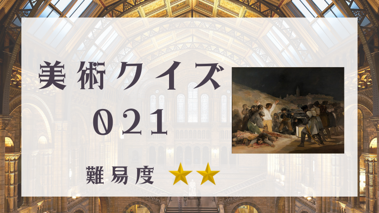 次の作品の作者とタイトルは何でしょう? 答えは↓にあります。スクロールして見てください。 作者 フランシスコ・デ・ゴヤ タイトル マドリード、1808年5月3日 制作年 1814年 時代・様式 ロマン主義 展示場所 プラド美術館(マドリード) 美術クイズ 正解したらシェアしてみよう! URLをコピーする URLをコピーしました! 美術クイズ #020 美術クイズ #022 関連記事 美術クイズ #215 2021年8月3日 美術クイズ #100 2021年4月10日 美術クイズ #196 2021年7月15日 美術クイズ #061 2021年3月2日 美術クイズ #154 2021年6月3日 美術クイズ #222 2021年8月10日 美術クイズ #254 2021年9月11日 美術クイズ #131 2021年5月11日 コメント コメントする コメントをキャンセルコメント ※ 名前 ※ メール ※ サイト 次回のコメントで使用するためブラウザーに自分の名前、メールアドレス、サイトを保存する。